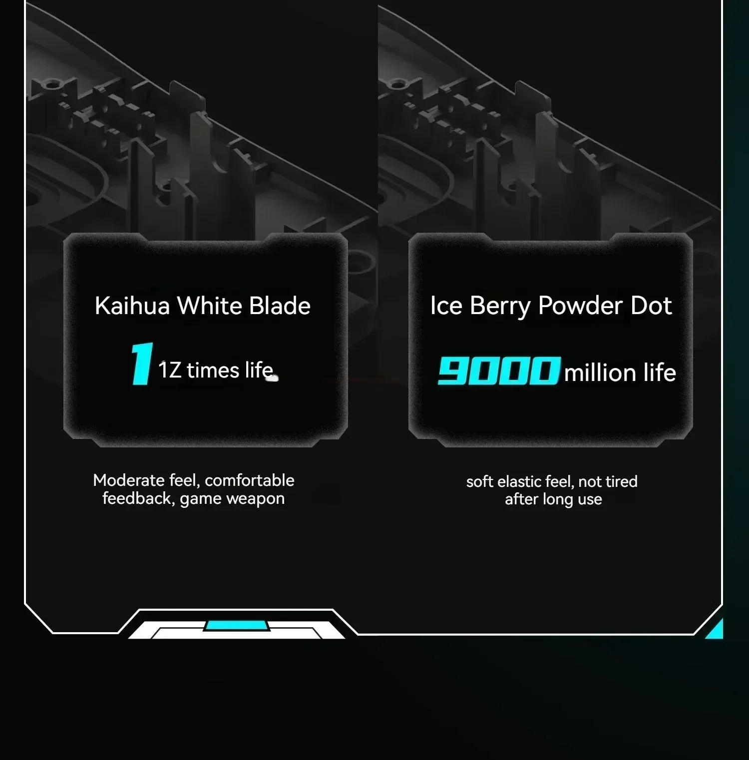 - Switch — Kailh white Blade/Ice Berry Pink Dot: Soft/Balanced Feel, Long Lifespan, Suitable for Prolonged Use.
