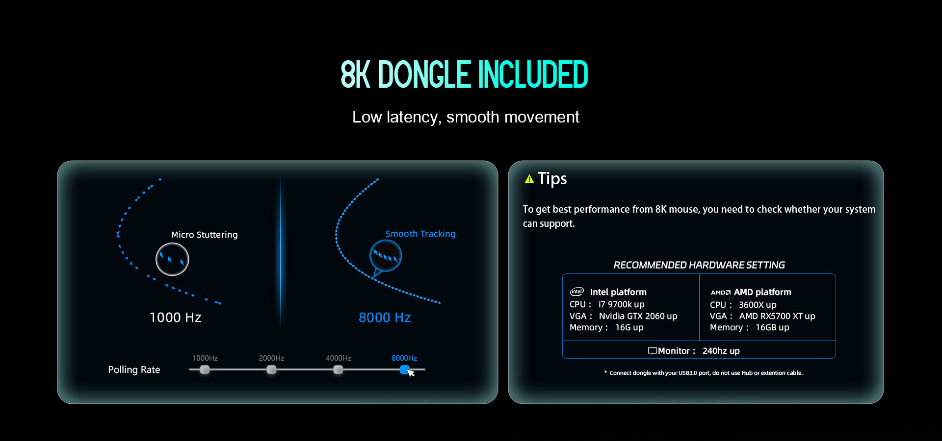 - Featuring an impressive 8,000Hz polling rate with a dongle included, these mice are built for performance and accuracy.
