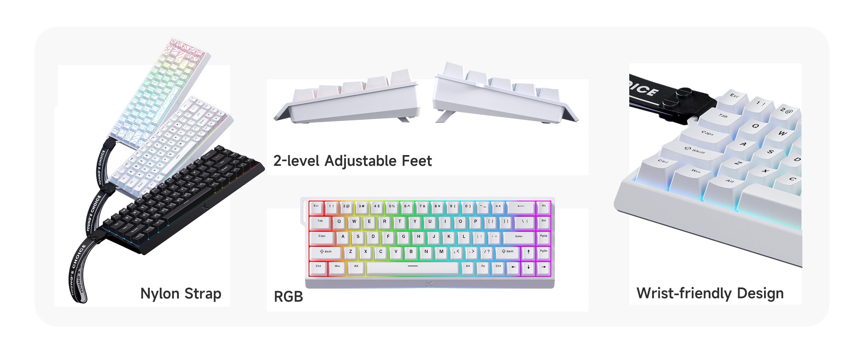 Tailor your experience with the Ace 68's innovative switch mixing capabilities. Support for various key switches lets you create your ideal setup, optimizing key response curves for maximum accuracy. Experiment and find the combination that best suits your playstyle.