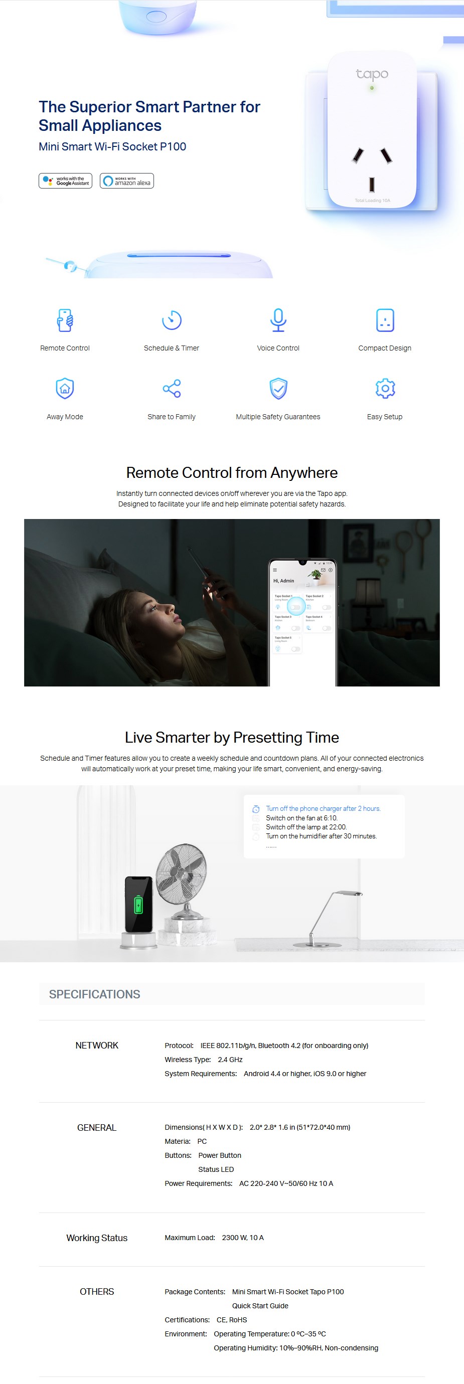 | Instantly turn connected devices on/off wherever you are through the Tapo app |
